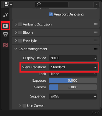- Render Properties > Color Management > View Transform : Standard