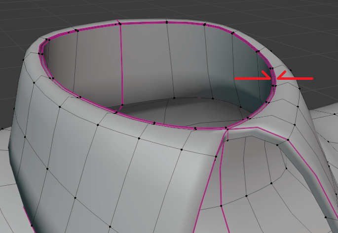 折り返しがある場合、背面カリングの対策として、裏表の両面にメッシュを貼らなければならないため、メッシュの切り裂き(Edge Crease)を必ず使用することになる。(参考画像では、切り裂いた後に片方のエッジを内側に少しずらしているが、実際は両方のエッジが重なる。)