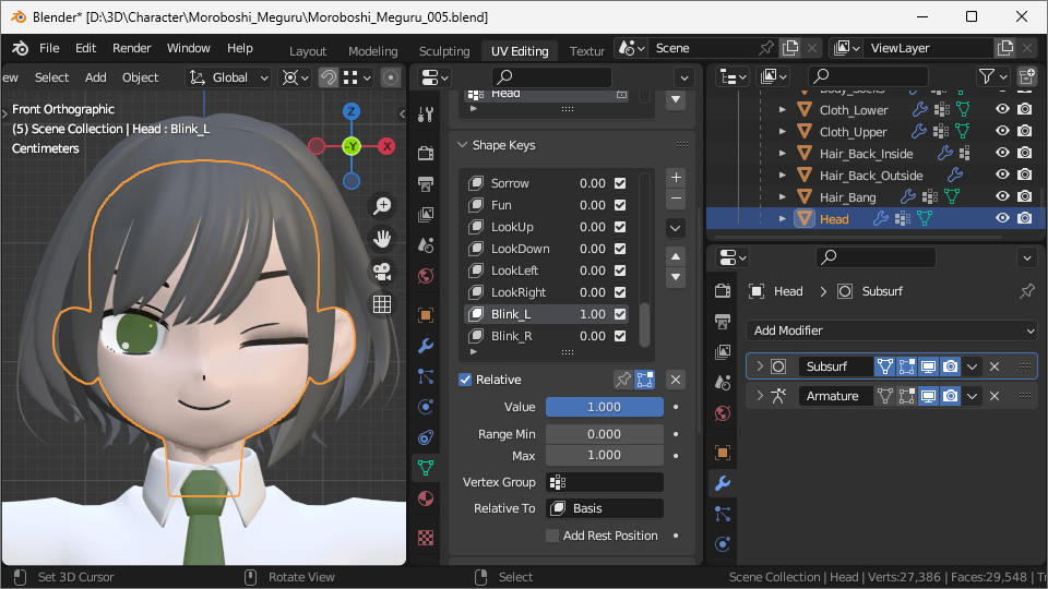 ▽ 左右非対称の表情(Look Left、Blink Left など)を全て作成する