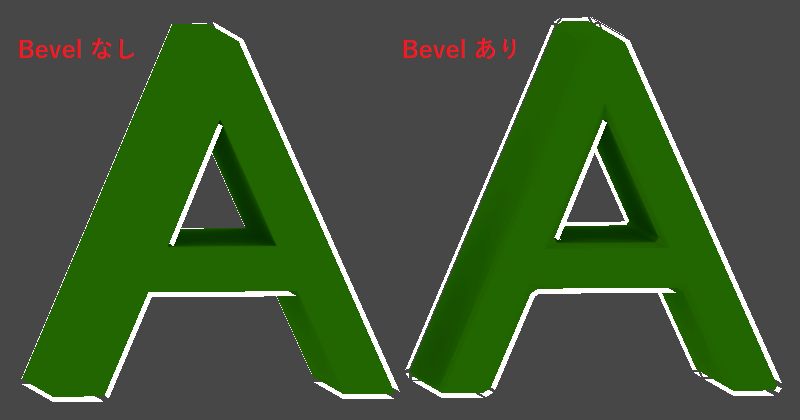 ハードエッジは、ほとんどのシェーダで綺麗にアウトラインが出ないため、ベベル加工する。もしくは、テクスチャにアウトラインを描いてしまう。(参考画像で使用しているシェーダは VRM の MToon である。)