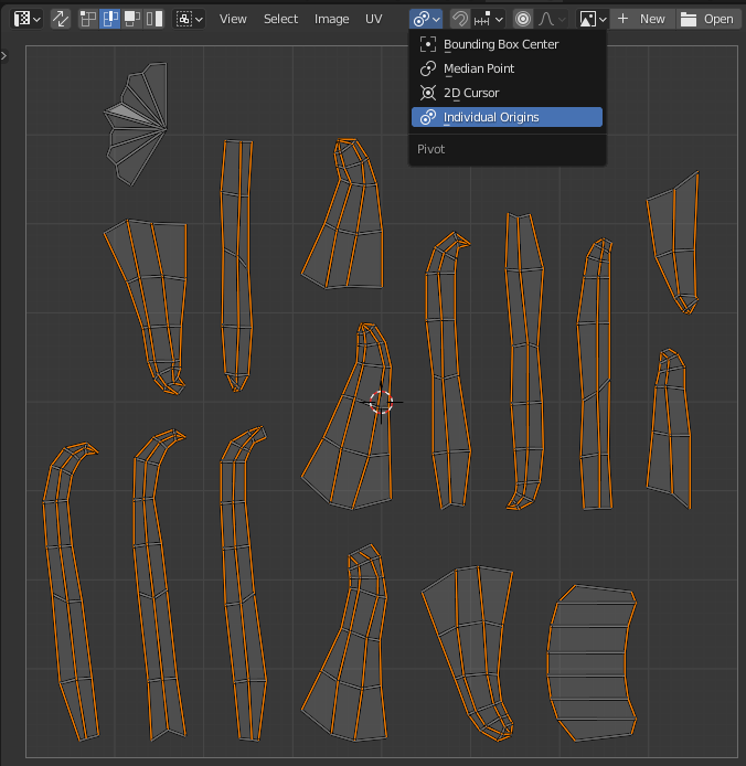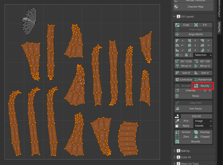 長方形に展開できる UV アイランドを選択して、Rectify を実行する。