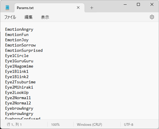 - テキストファイルにパラメータの名前を列記する
