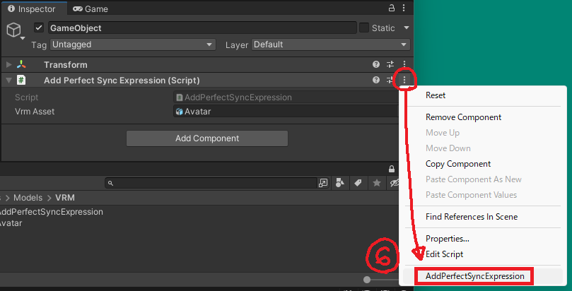 - Assets フォルダの適当な場所に、AddPerfectSyncExpression という名前の C# Script を作成する
